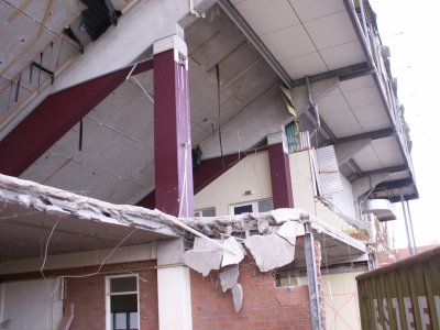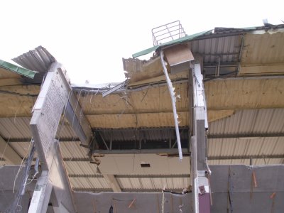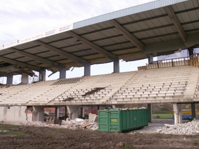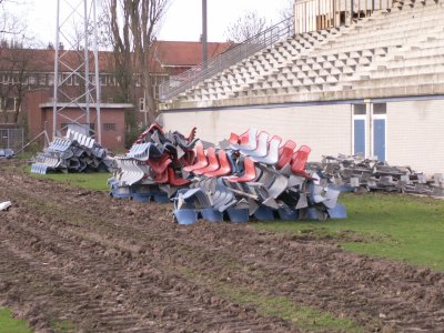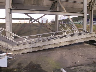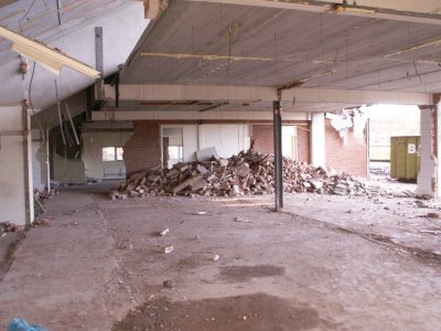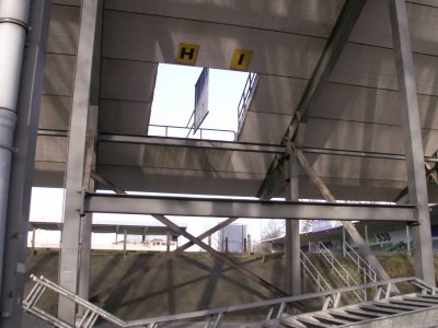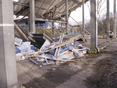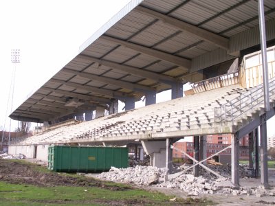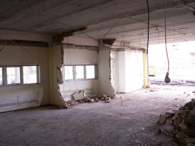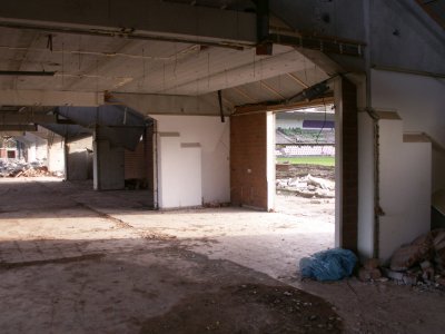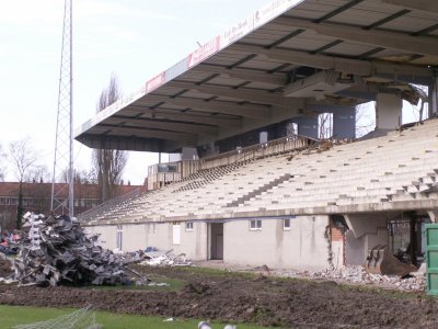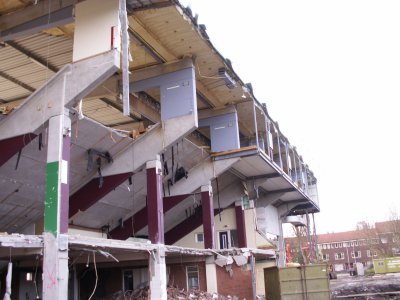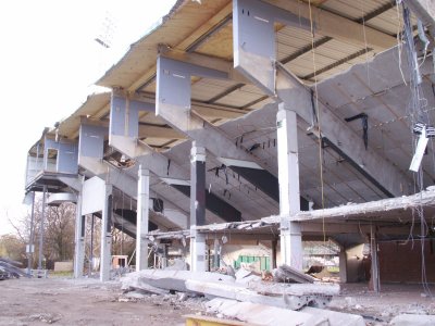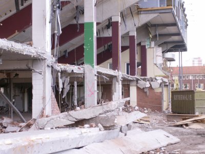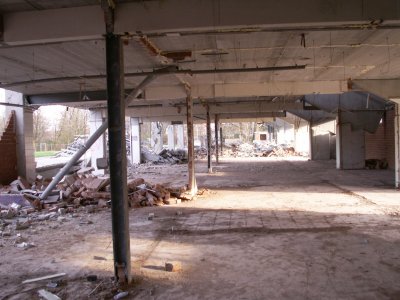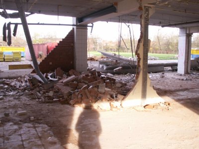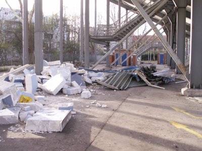 Hier heeft men de kaartverkoophokjes en wc's gesloopt.