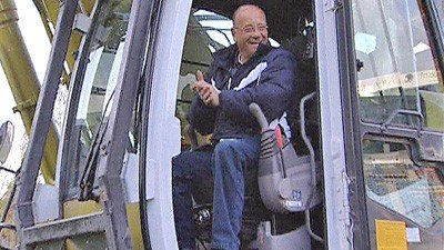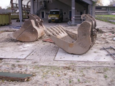 De grijper pakt wat stoeltjes. (foto: Kees Plancius)