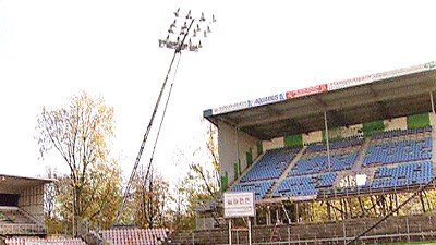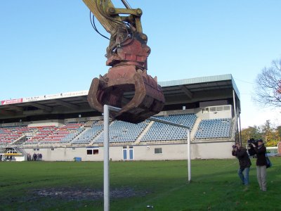 Daar gaat de lichtmast. (foto: FC Groningen)