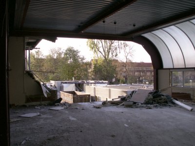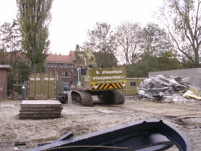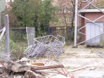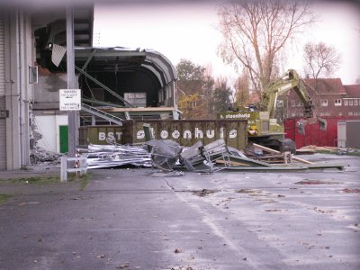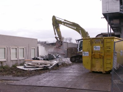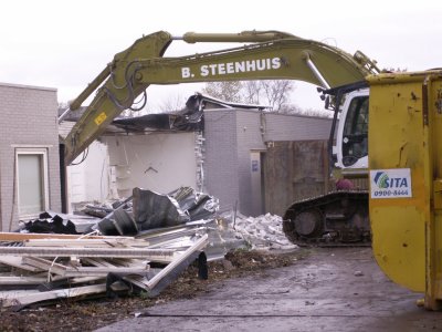 Al het sloopmateriaal wordt naar beneden gekegeld.