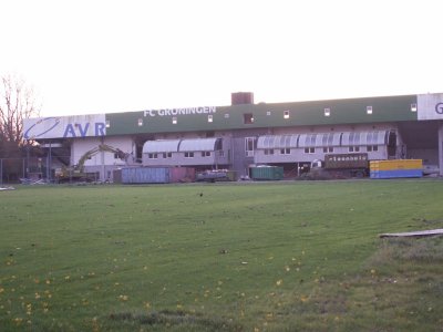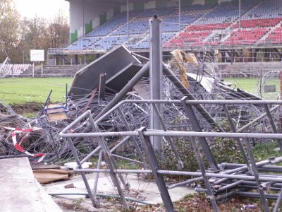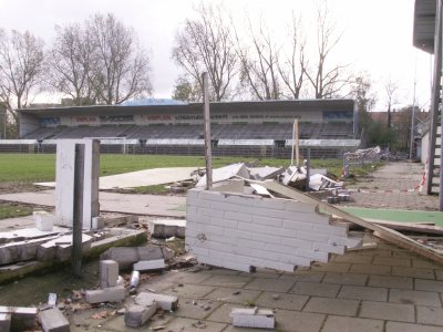 Achter de Tonny van Leeuwentribune is het hekwerk verwijderd.