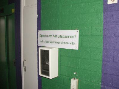 'Deze ruimte niet met voetbalschoenen betreden'.