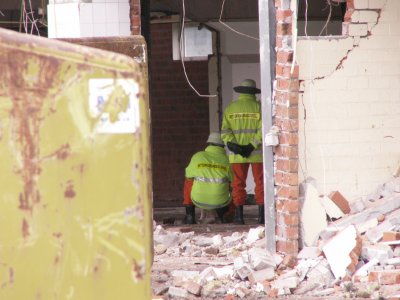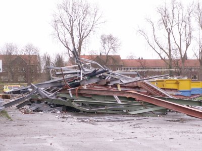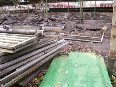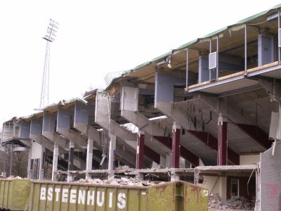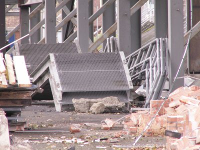 Hier heeft men de kaartverkoophokjes en wc's gesloopt.